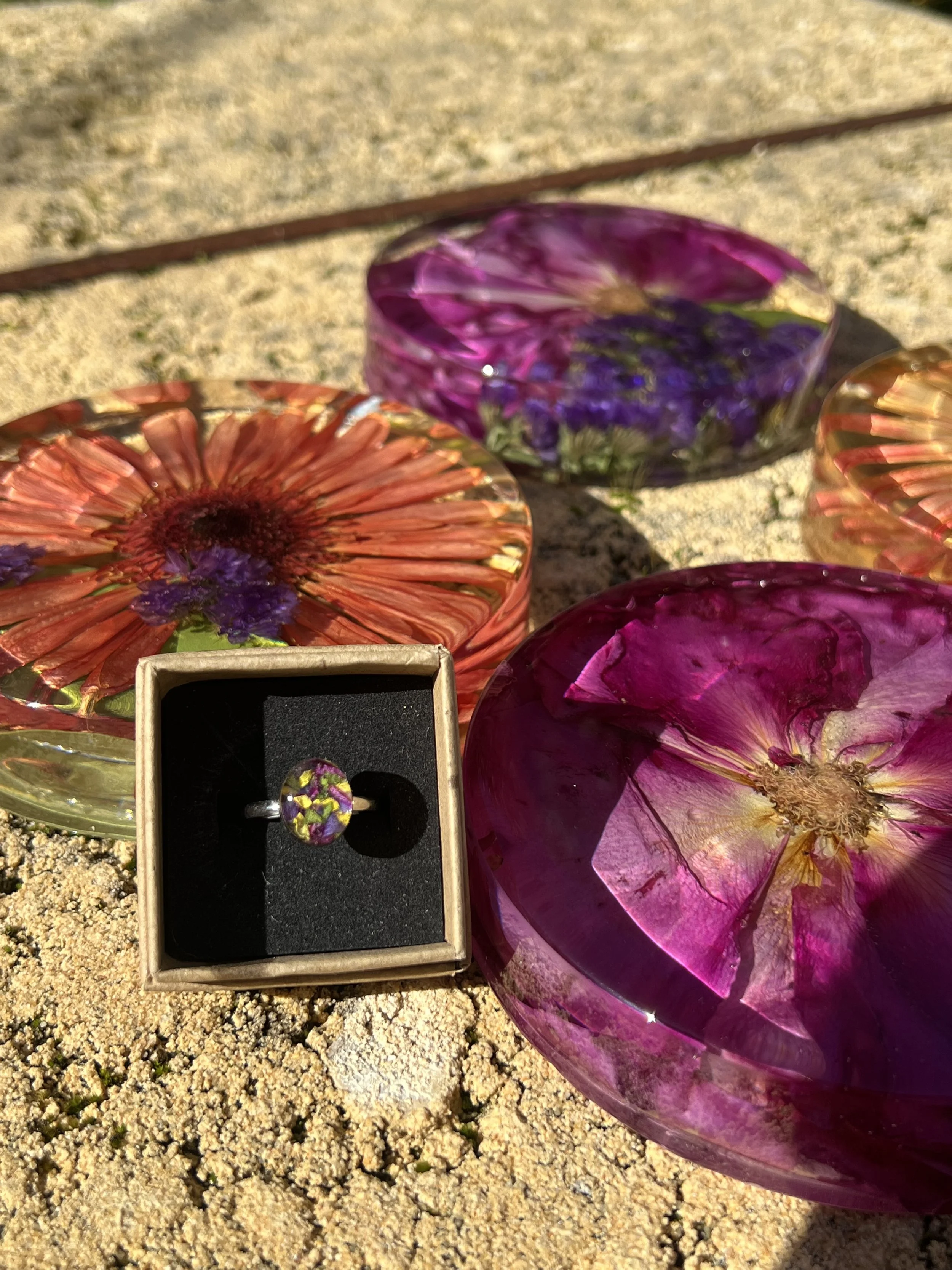 Your entire order can take anywhere from 8 to 10 months to complete especially if it’s a large order or popular items. It’s important to be patient with resin as it can be a temperamental medium. It all depends on your flowers and how you’re wanting to preserve them. In peak season this may be extended. In winter, the process can also be held up slightly due to weather restrictions.